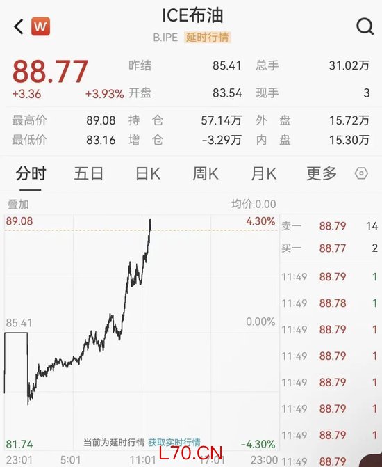 【导读】国际原油价格飙涨,布油盘中站上89美元/桶