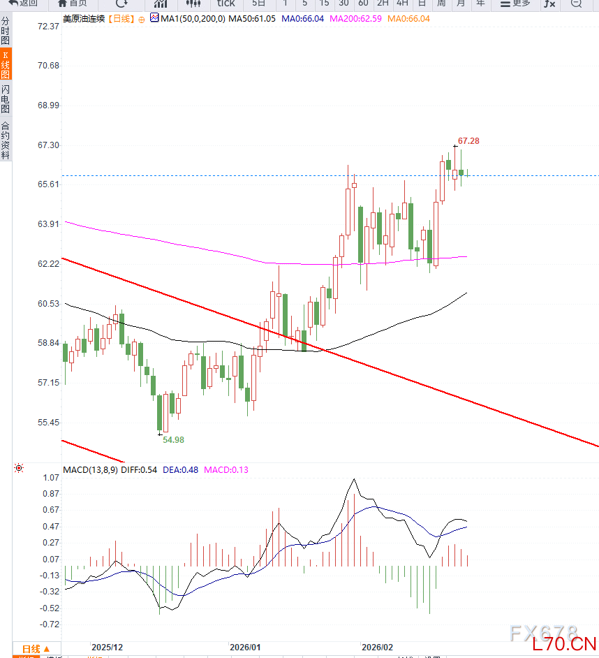 若谈判继续释放积极信号,油价可能进一步测试63美元附近区域;若外交进程受阻或局势再度紧张,则油价有望迅速收复67美元并向70美元发起挑战。